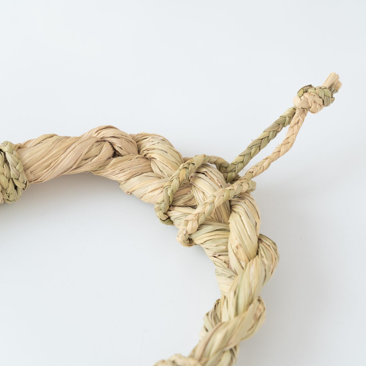 デザイナーのおじいちゃんが毎年作り続けてきたしめ縄。 受け継いでいきたいという思いから、おじいちゃんから作り方を教わり製作がはじまりました。今年で、6年目になります。 現代のお家にも合うようにミズイロトシロらしくアレンジし、デザイナー自らが手作業で作りお届けします。 今年刈り取った新米の藁を、丁寧に干して整え使っています。